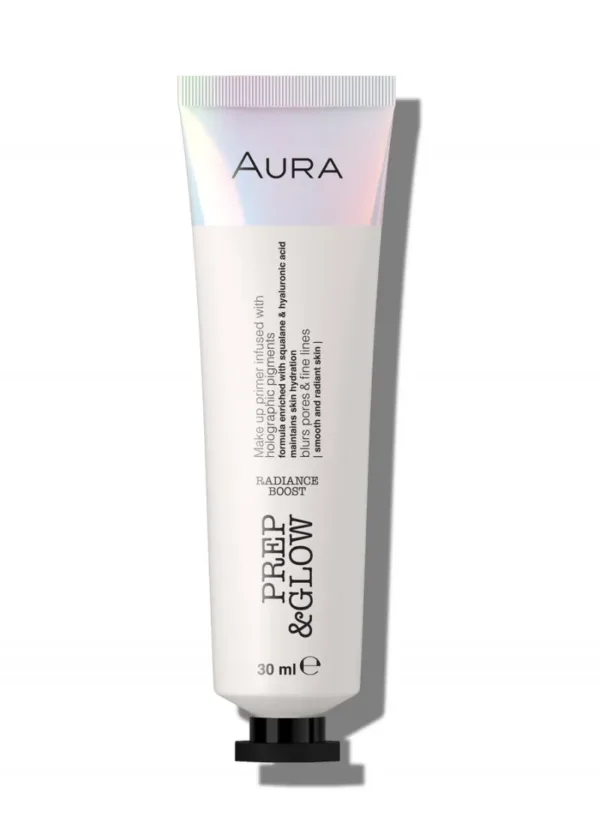 Aura PREP&GLOW Hologramska baza za šminku kožu čini glatkom i matiranom, a nepravilnosti manje vidljivim pa zato puder, kao i svaka druga šminka posle nje, daje svoj maksimalan efekat i postaje dugotrajniji.