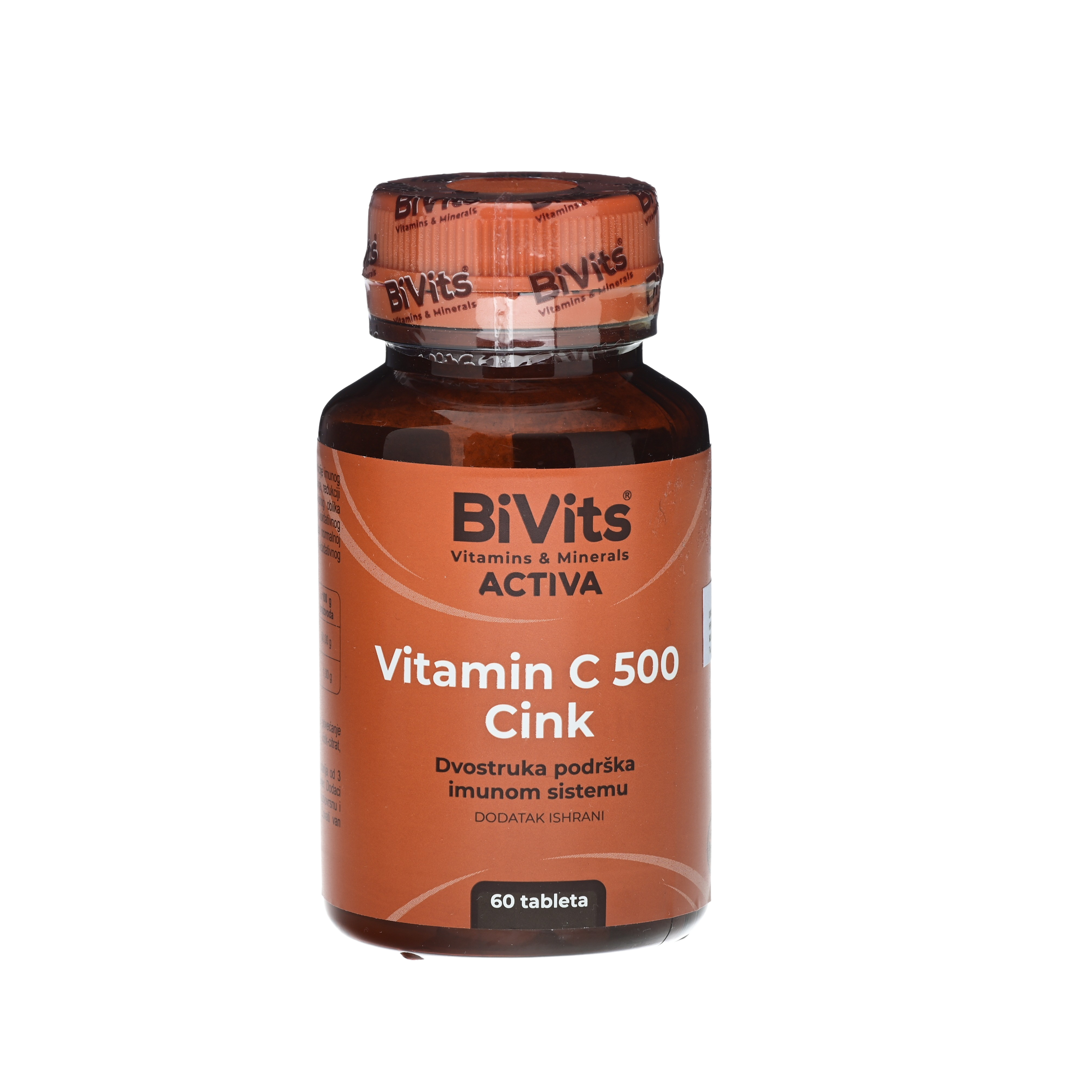 BiVits Vitamin C 500 i Cink sadrži 500 mg vitamina C i 10mg organskog oblika cinka. Cink i vitamin C neophodni su za normalno funkcionisanje imunog sistema. Doprinose smanjenju umora i iscrpljenosti. U stanjima prehlade i gripa.