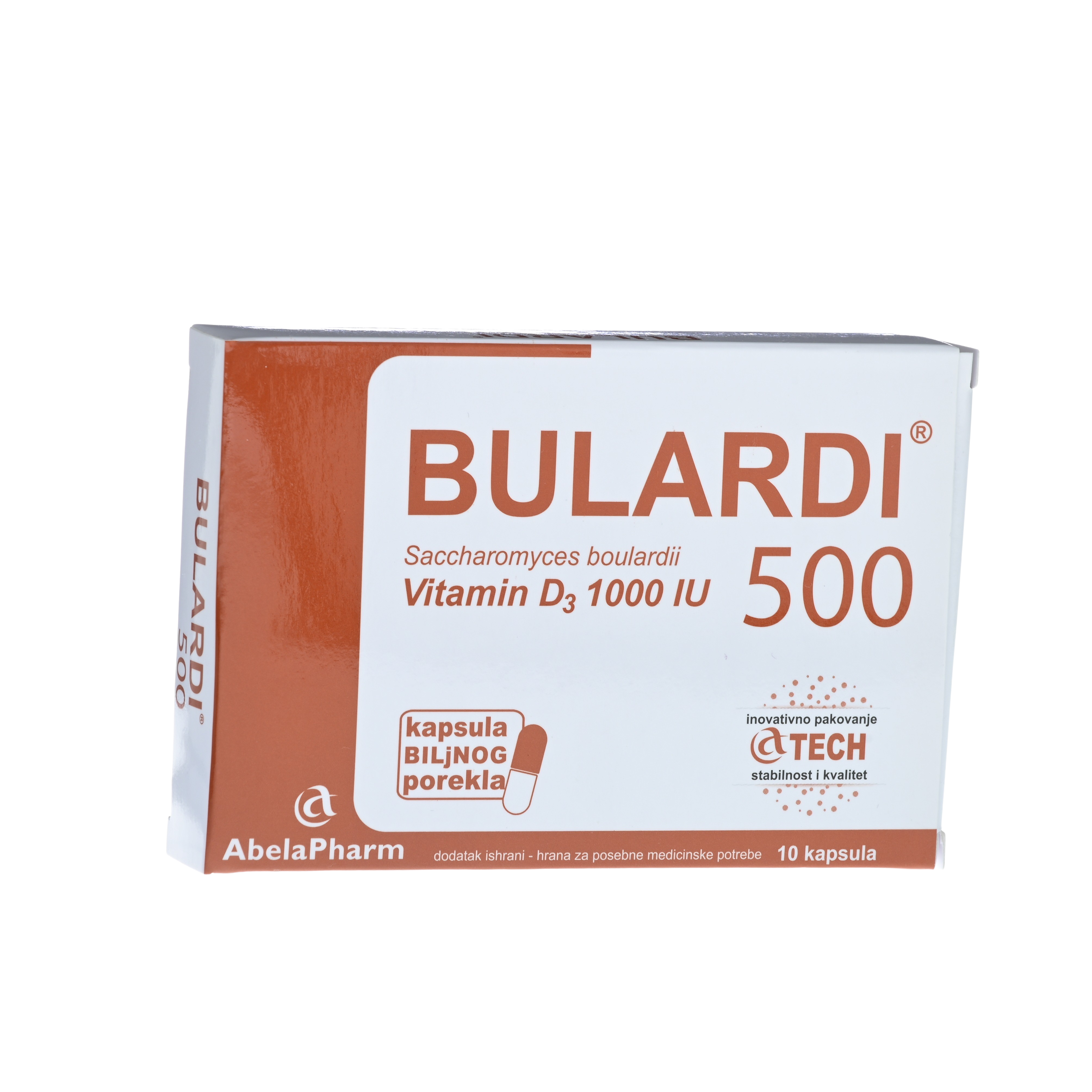 Bulardi 500 kapsule sadrže dvostruko veću dozu probiotske kulture S.boulardii, uz dodatak vitamina D3 u optimalnoj dozi.