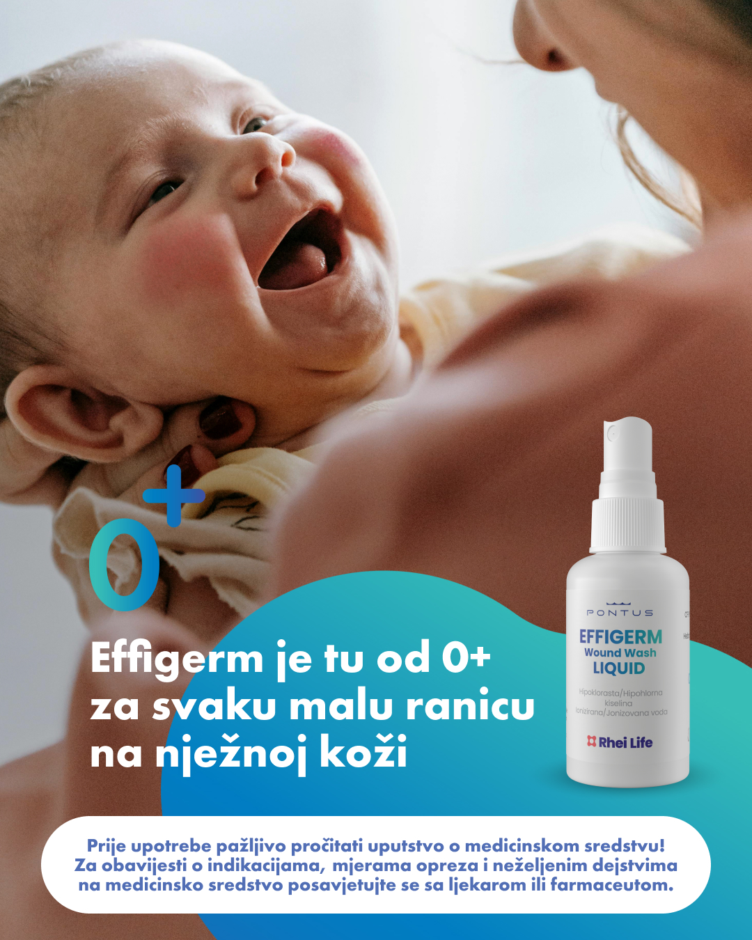 Ne sadrži alkohol, pogodan za primjenu od rođenja te se ne mora ispirati.