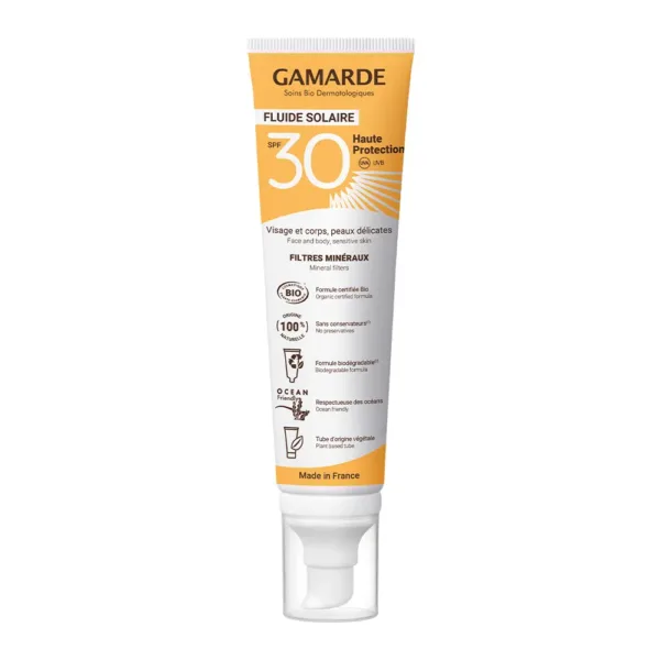Gamarde zaštitna krema za sunčanje faktor 50 pruža zaštitu tokom sunčanja za sve tipove kože. Ovaj proizvod je zasnovan na 100% mineralnim filterima koji su u non-nano obliku i ne sadrži hemijske filtere. Njegova tečna i prozirna tekstura ne ostavlja bijele tragove prilikom nanošenja.Izbjegavati pretjerano izlaganje suncu, naročito u periodu između 12 h i 16 h. Ne pruža stopostotnu zaštitu.