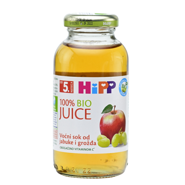 HiPP 100%-tni sokovi, voćni napitci i voćni nektari napravljeni su od voća prirodno dozrelog na suncu. Sok od mrkve dobija se direktno iz svježih mrkvi. Voće i povrće uzgojeno je po načelima organsko-biološkog uzgoja – bez umjetnih gnojiva i pesticida. Plodovi imaju dovoljno vremena da sazriju i razviju svoj specifičan, prirodan okus. Arome se ne dodaju. Sokovi su bogati vitaminom C, blago su kiseli i dijete im se lako prilagođava. Kad započenete s dopunskom prehranom djeteta, sokovi su idealan izvor vitamina i ako se pije uz obrok, vitamin C iz soka potiče apsorpciju željeza iz povrća i žitarica. Udio voća 100%. Bez dodatka šećera. Čini stolicu mekšom. Ne sadrži gluten. Od 4. mjeseca.