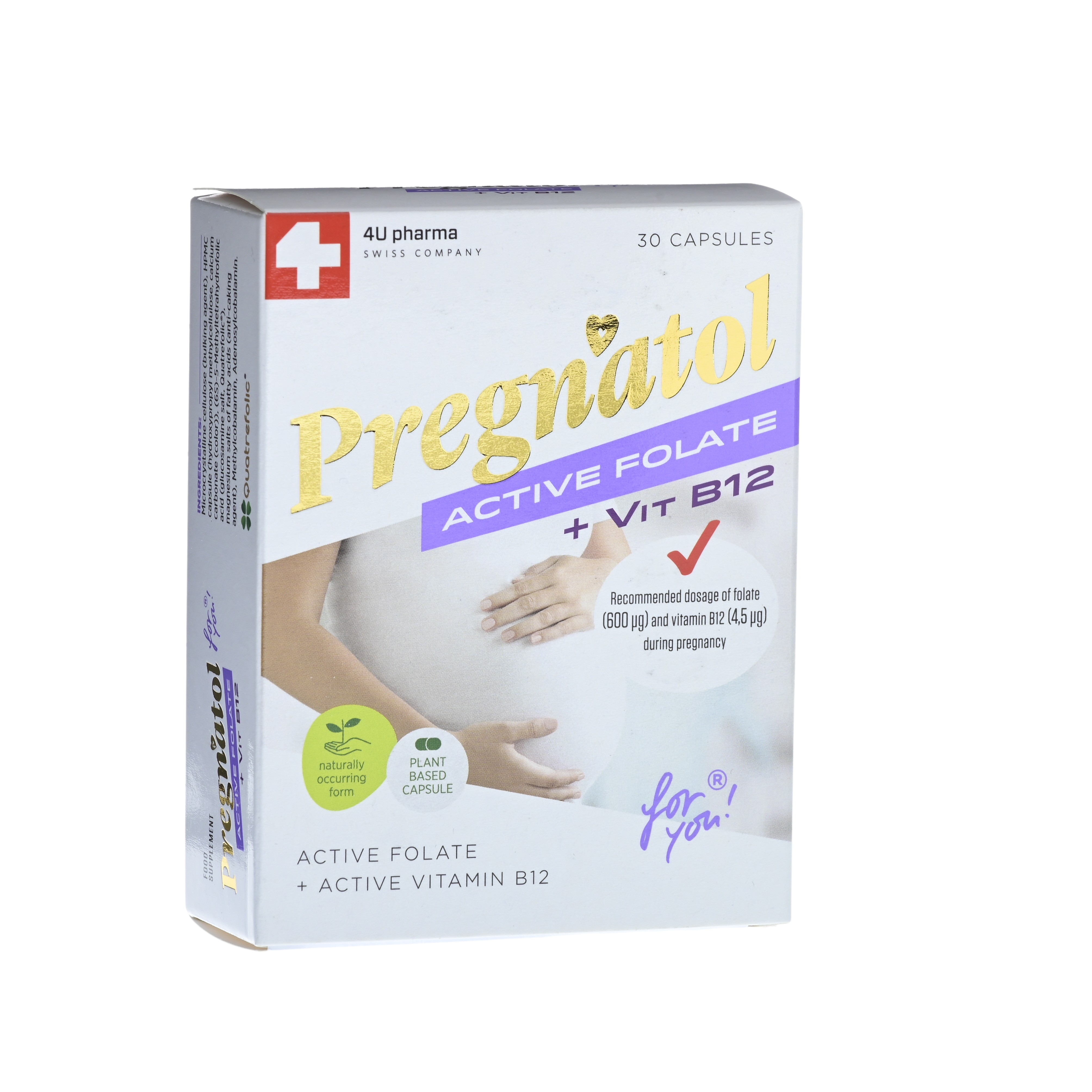 U proizvodu Pregnatol Active Folate + vit B12 nalaze se dva prirodna, aktivna oblika vitamina B12 – metilkobalamin i adenozilkobalamin. Oni se prirodno nalaze u organizmu. Metilkobalamin – djeluje u ćeliji, a adenozilkobalamin se nalazi u svim tkivima i 20% u krvi. Ima važnu ulogu u produkciji energije, djeluje protektivno na nerve i učestvuje u metabolizmu aminokiselina i hormona.