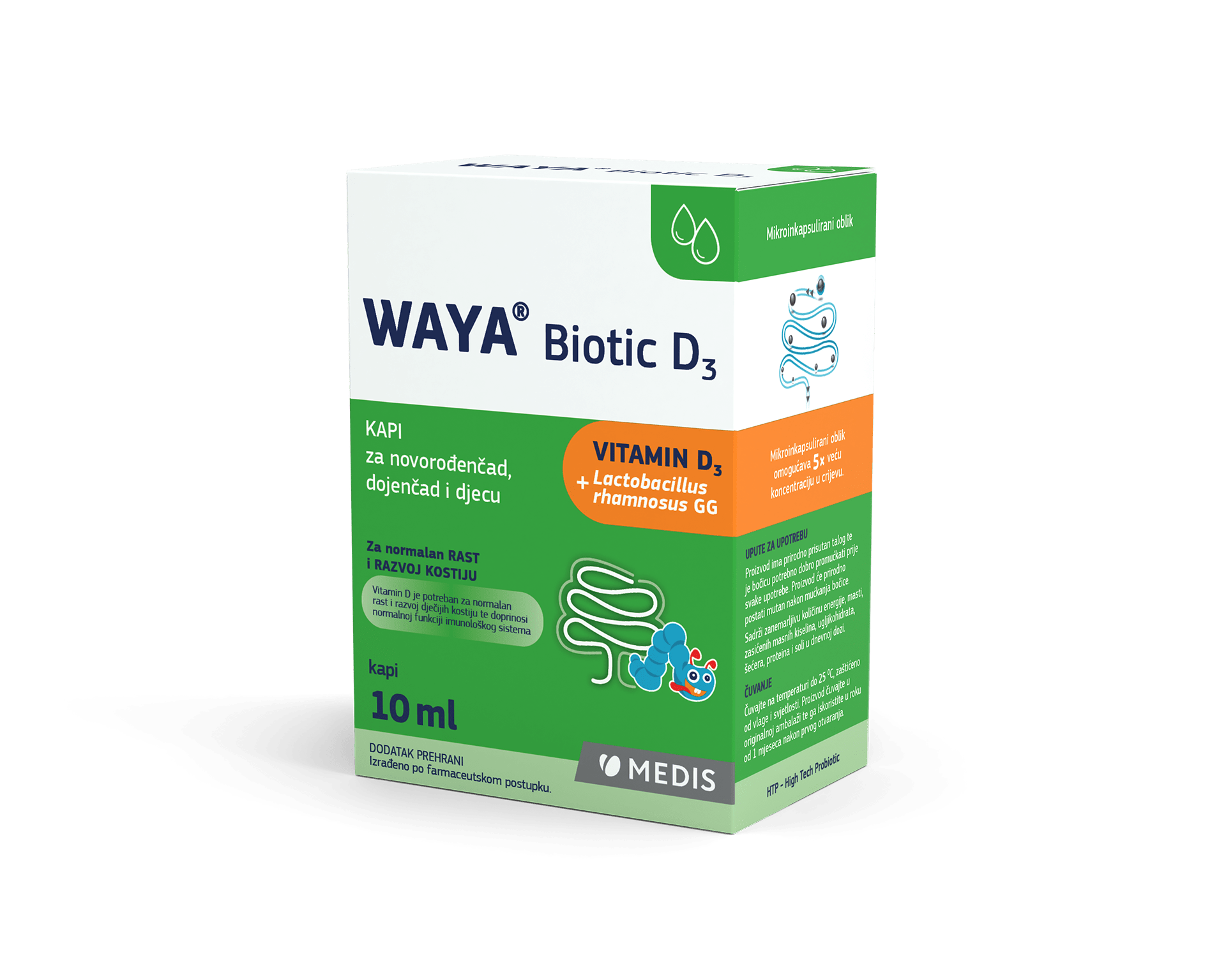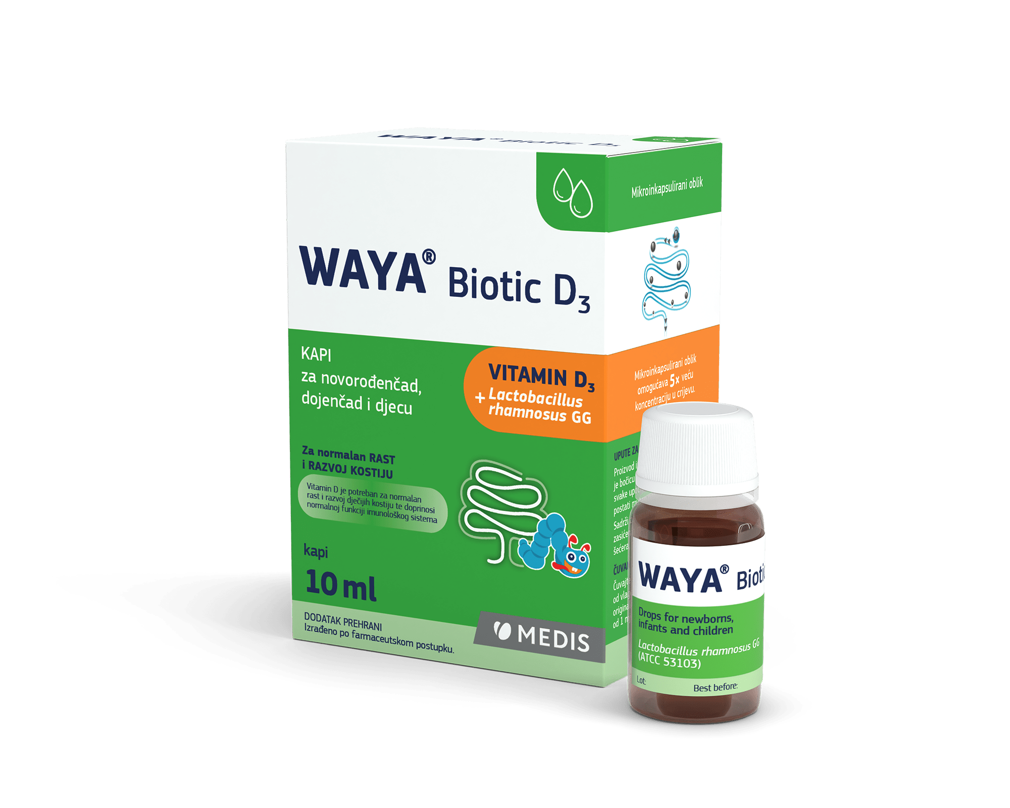 Jedine kapi s probiotičkom kulturom Lactobacillus rhamnosus GG i vitaminom D3 u uljnoj suspenziji te je zato vjerovatnoća pojave grčeva kod novorođenčadi i dojenčadi minimalna.